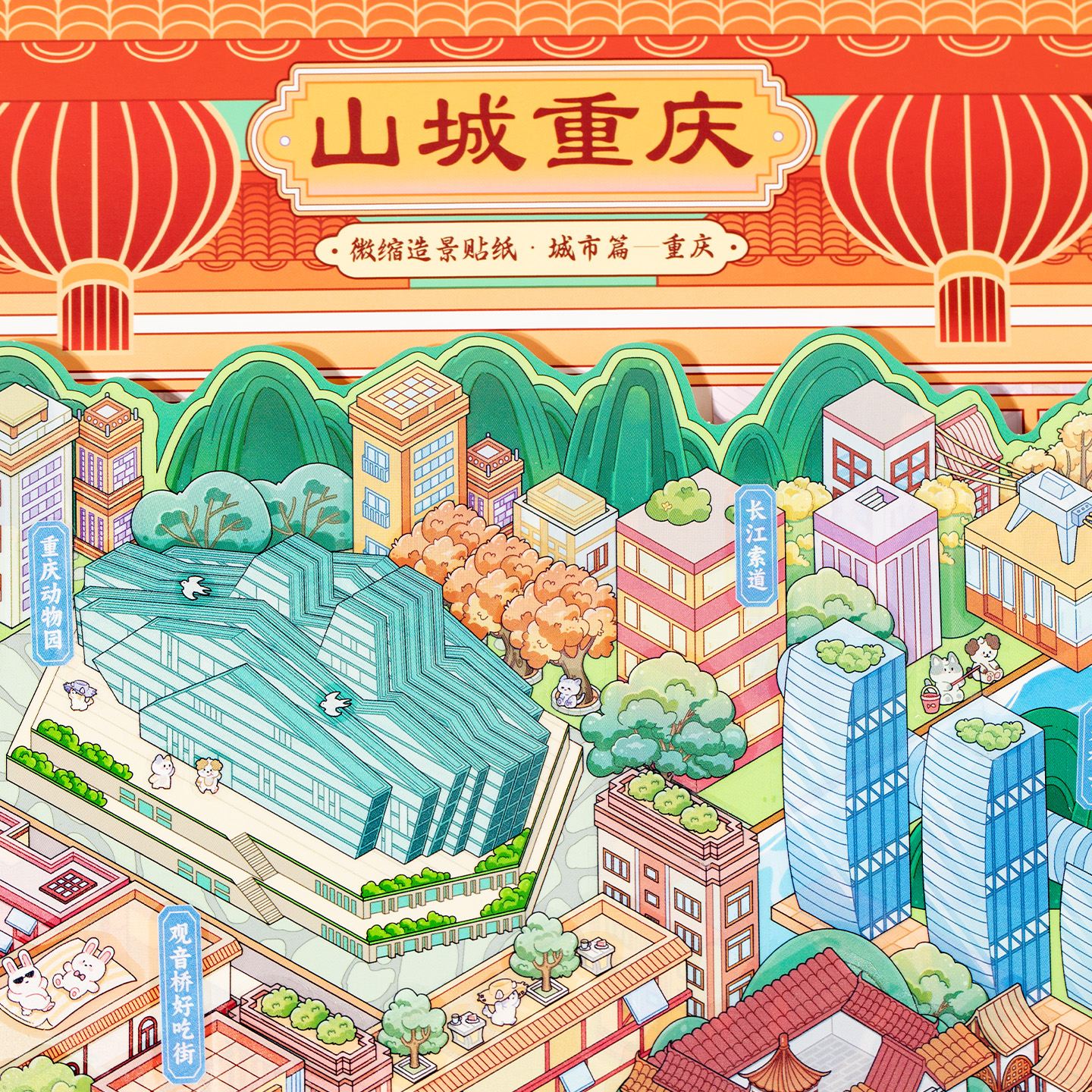 语闲城市系列造景贴纸5.0+6.0+7.0合集重庆青岛长沙篇大号大尺寸古风微缩场景合集本3d立体小屋贴画玩具女孩