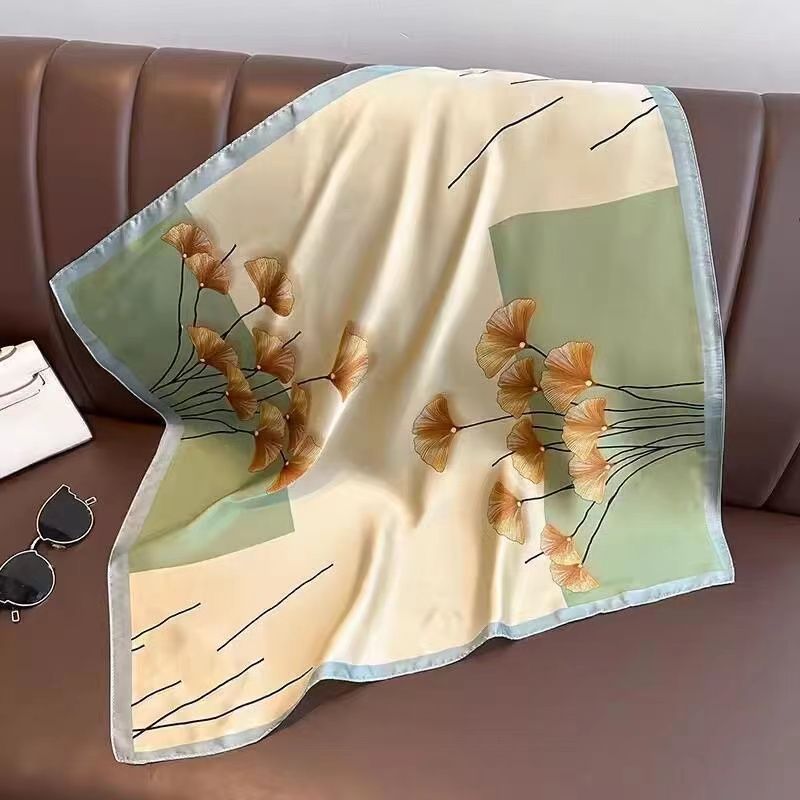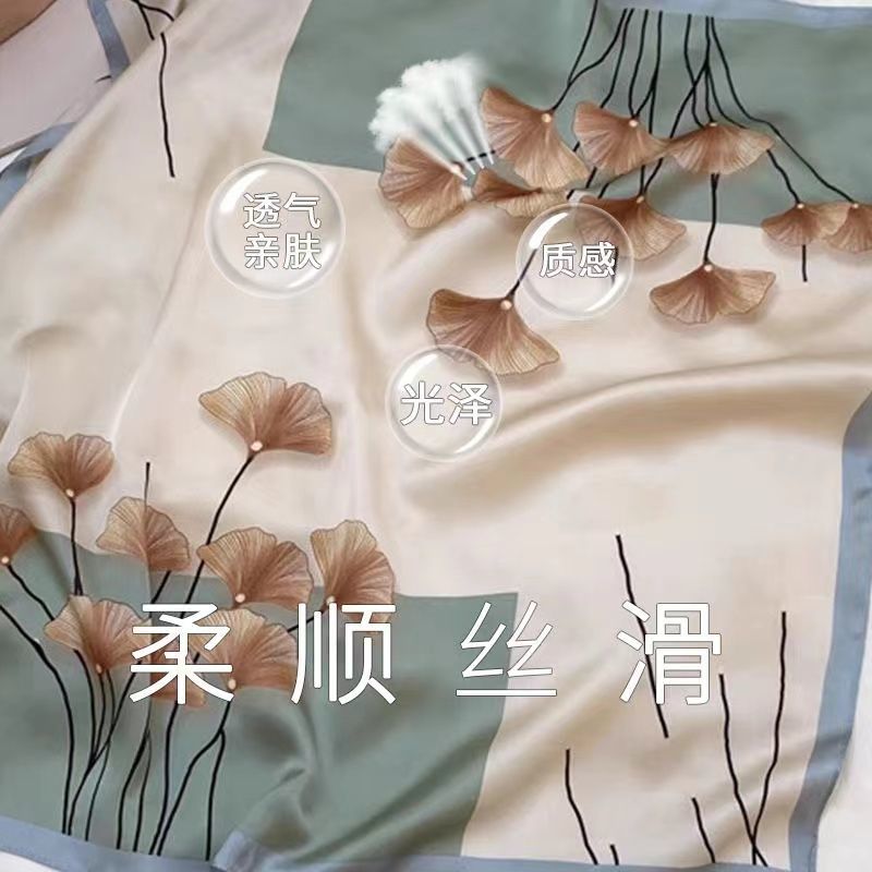 时尚百搭丝巾小方巾送妈妈礼物春夏新款高级感围巾领巾绿色红色