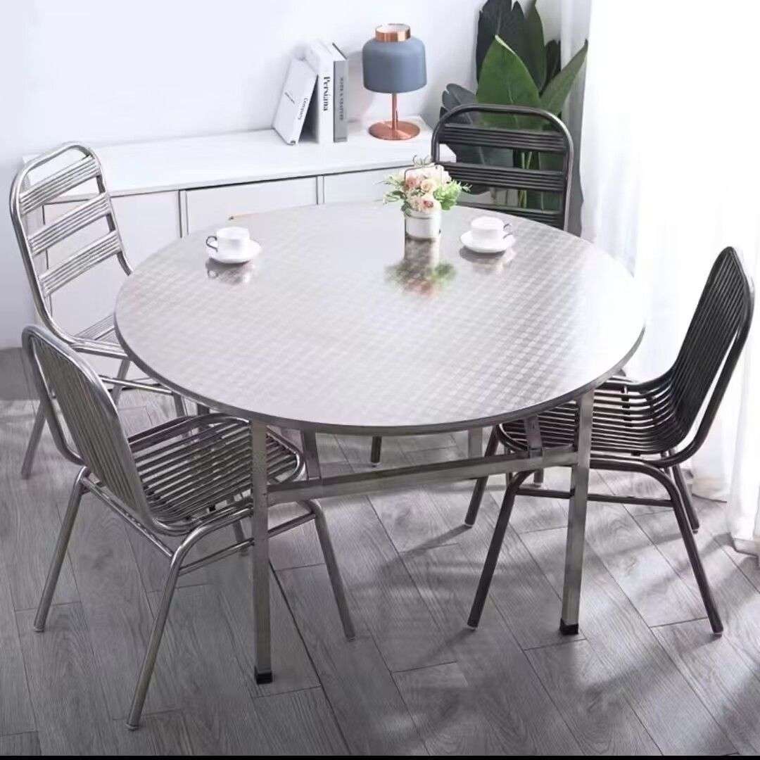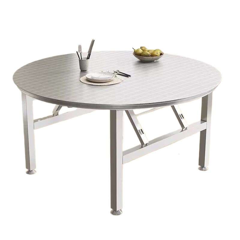 加厚不锈钢圆桌可折叠桌大排挡流水席饭店桌出租房农村家用吃饭桌