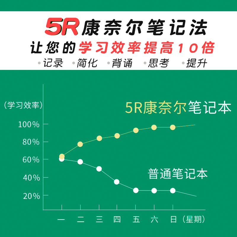 康奈尔5r记忆法笔记本子简约大学生考研法考网格本B5加厚可拆卸方格活页纸替芯初中生超厚A4活页本不硌手