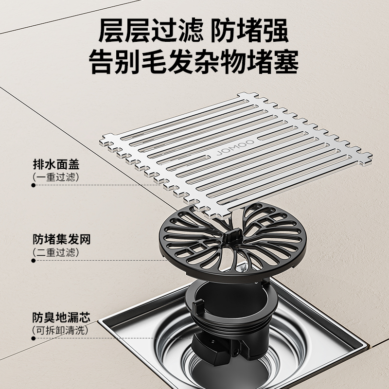 九牧不锈钢地漏防虫防臭卫生间浴室通用大排量下水道防臭芯防反味