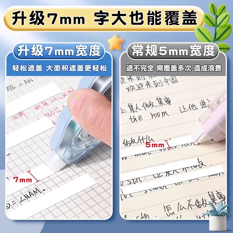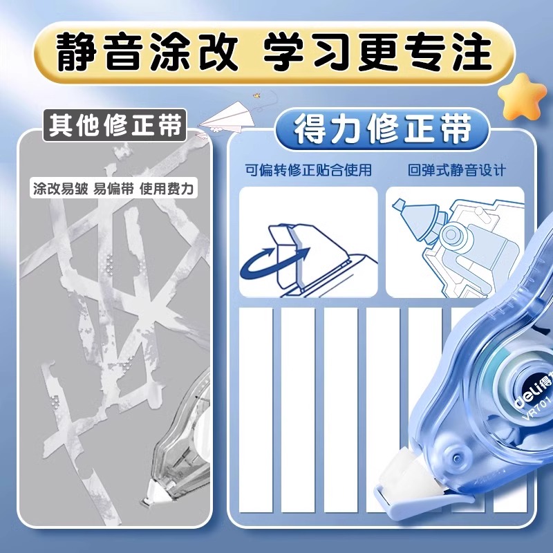 得力加宽修正带大容量实惠装初中生学生专用透明外壳改错带高颜值女生黑科技网红新款去痕无字涂改带涂改液