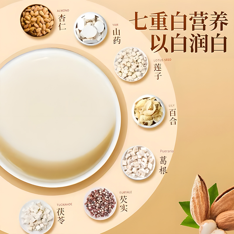 杏仁七白饮官方旗舰店正品原材料粉山药百合茯苓芡实莲子葛根早餐