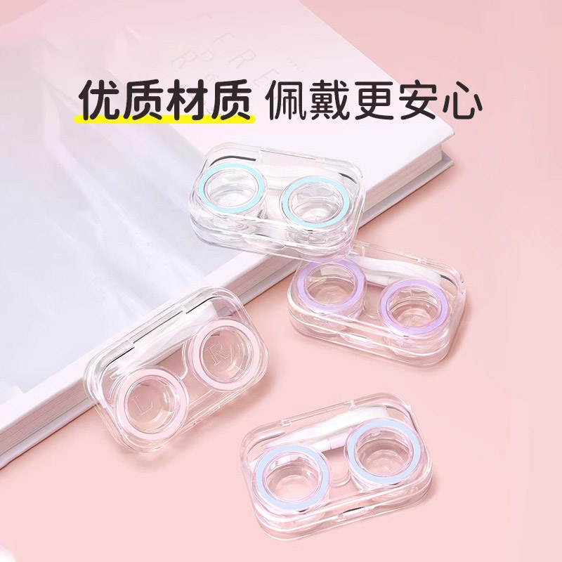 免拧盖隐形眼镜盒高级感一体式便携多副收纳护理伴侣双联美瞳盒子