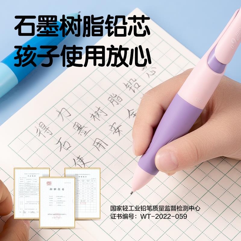 得力自动铅笔透明清新款HB小学生儿童按动式专用0.7笔芯活动铅笔