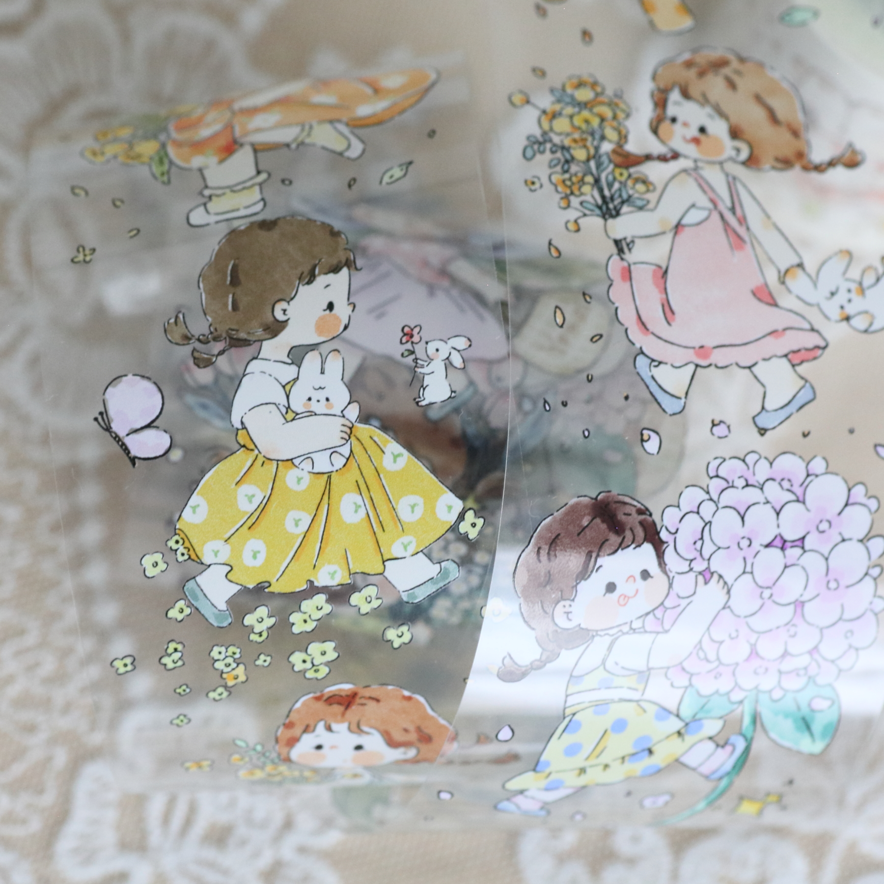一粒柚子 胶带第一弹合集 女孩人物花朵胶带 和纸pet切膜贴纸卷