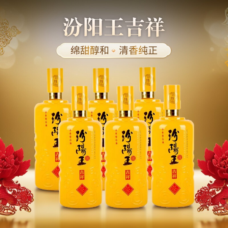 山西名酒白酒汾阳王吉祥清香高度纯粮酒53度1L清香型瓶装酒业国货