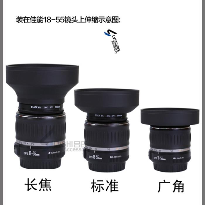 吕氏 52mm 三用橡胶遮光罩 可变形折叠 广角 中焦 长焦 都合适