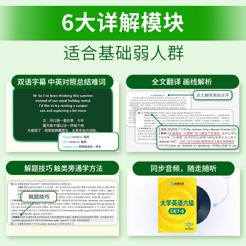 华研外语英语六级真题淘金式详解备考2025年12月大学历年真题试卷cet6级考试单词汇阅读理解听力翻译专项训练书指南口语作文写作