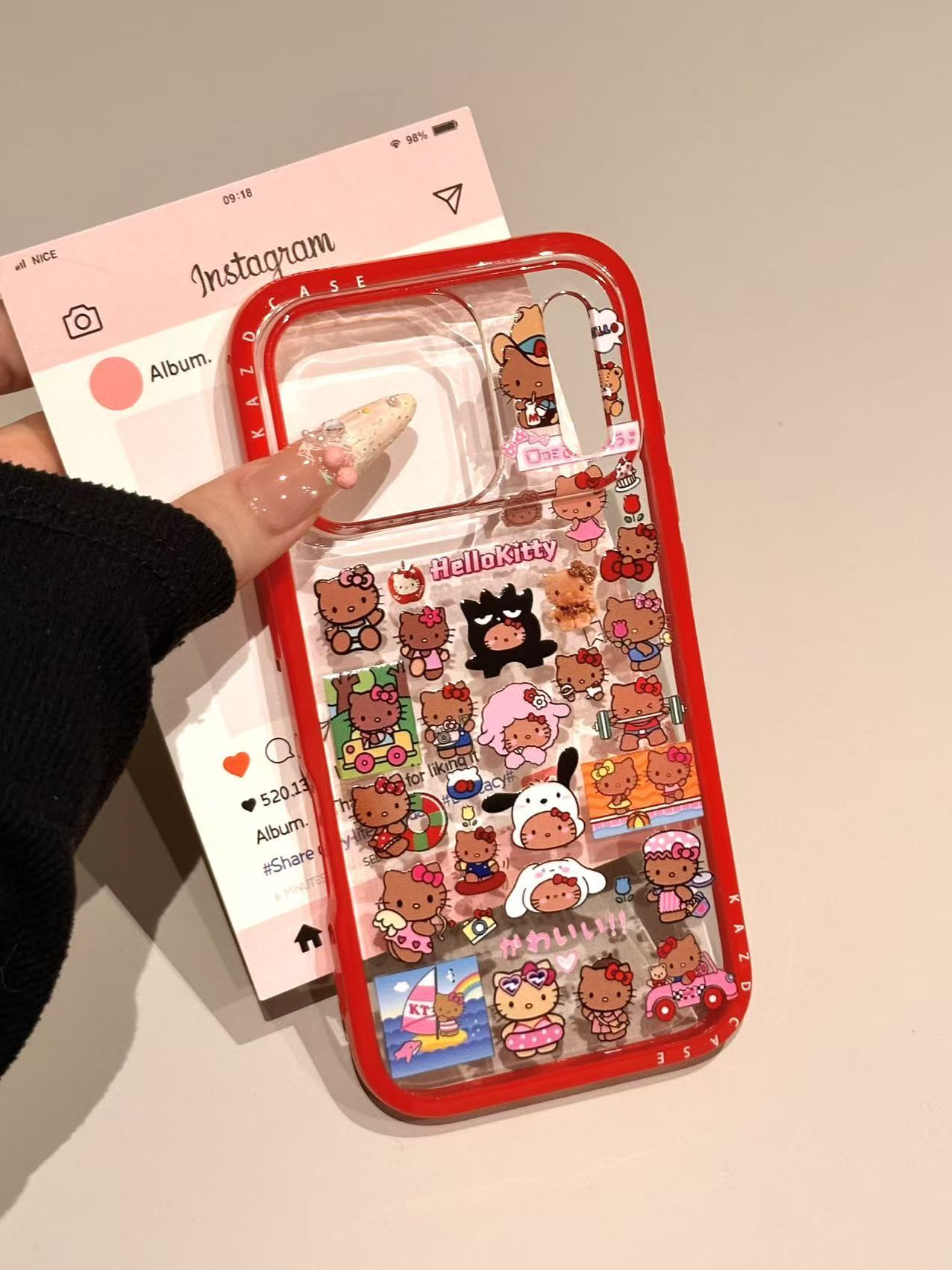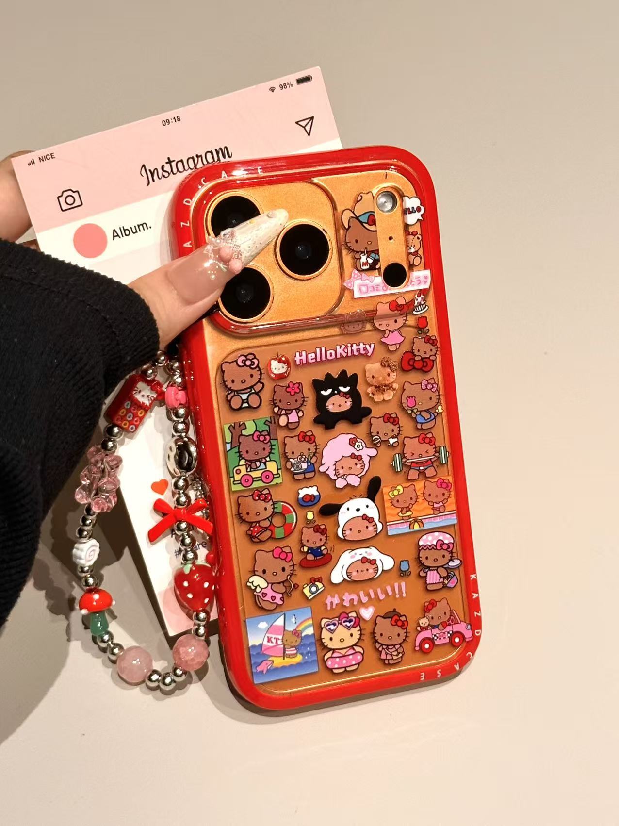 卡通可爱红三丽鸥黑皮KT猫双面壳适用苹果17/16/15/14防摔手机壳 · 红框满屏牛奶糖女孩-单壳 苹果15