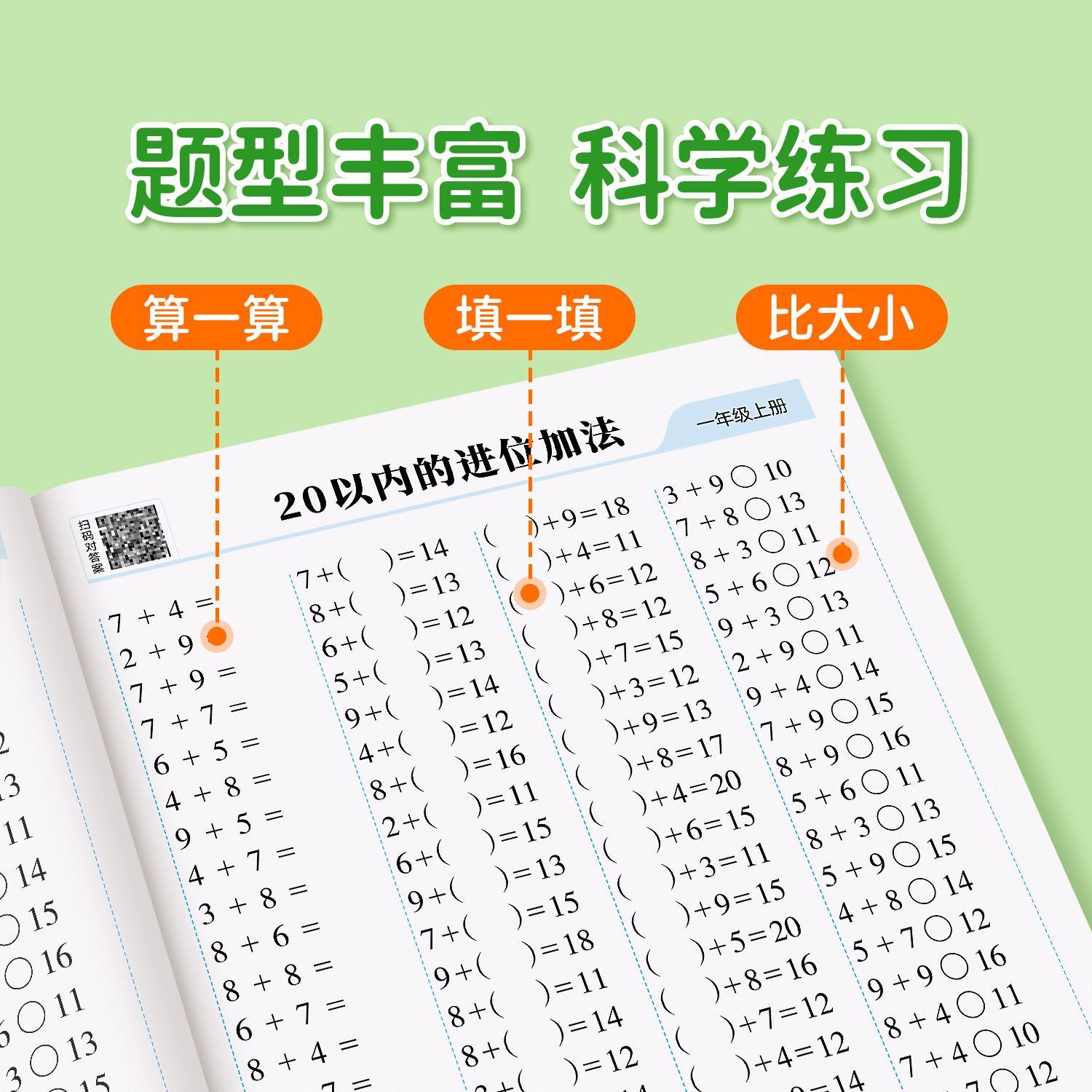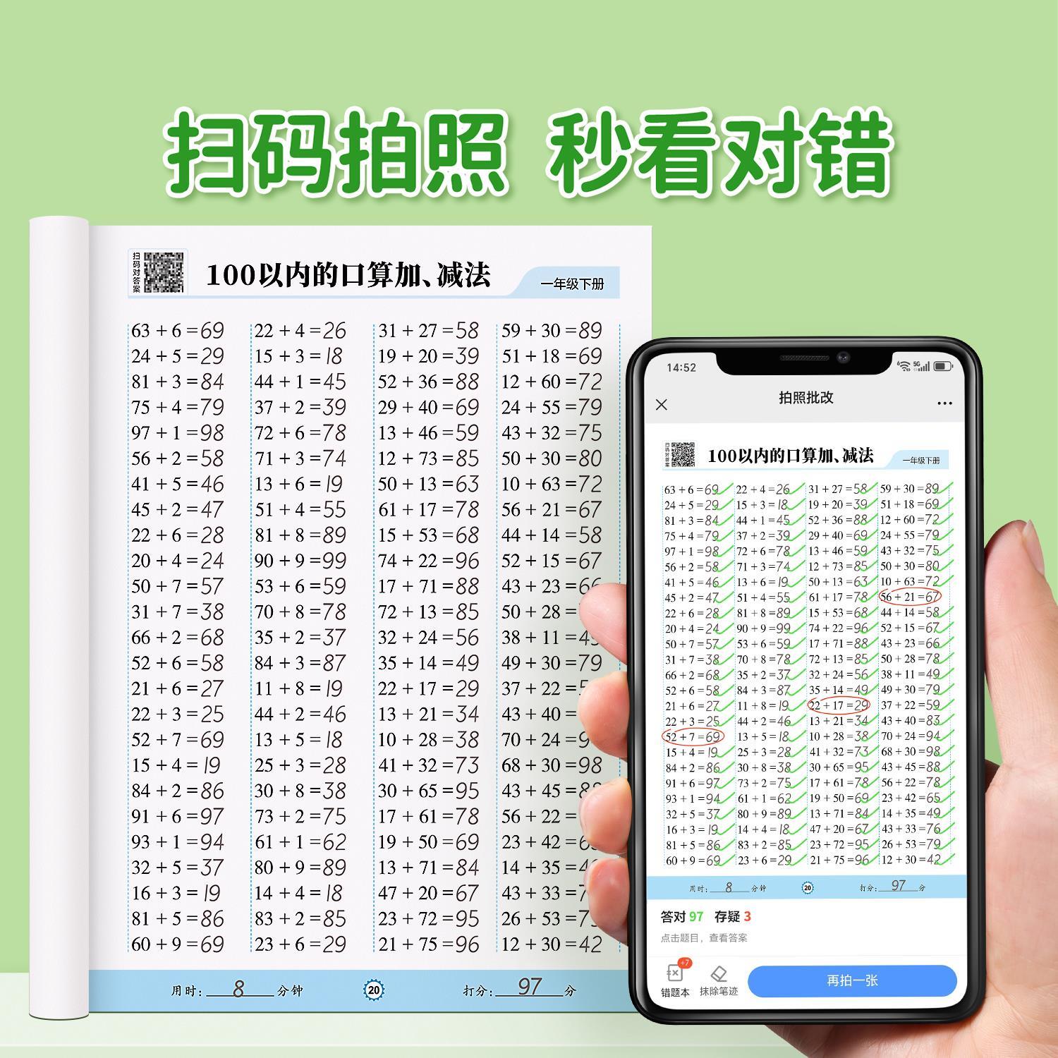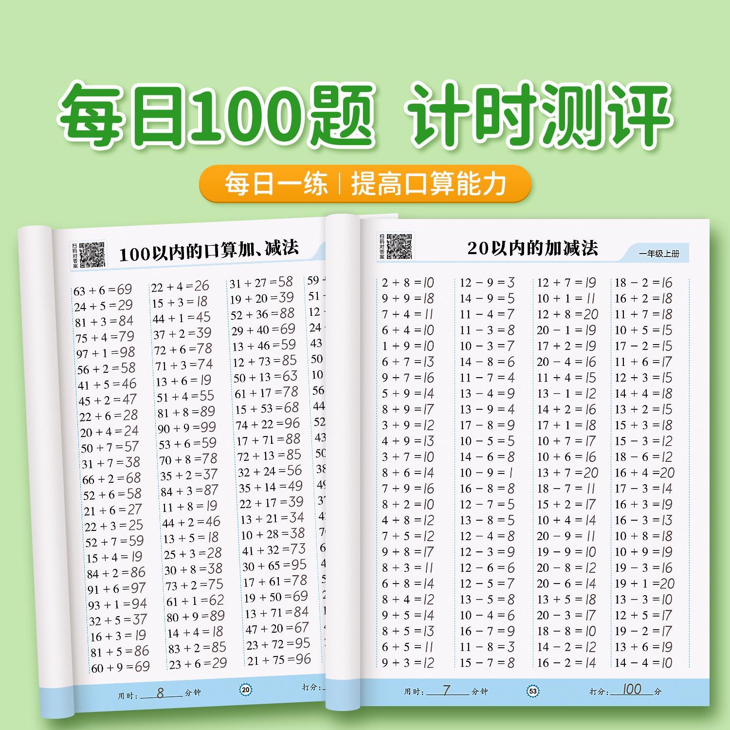一年级上册下册数学口算天天练二年级口算题卡每天一练20 100以内的加减法专项练习本人教版数学同步练习题册