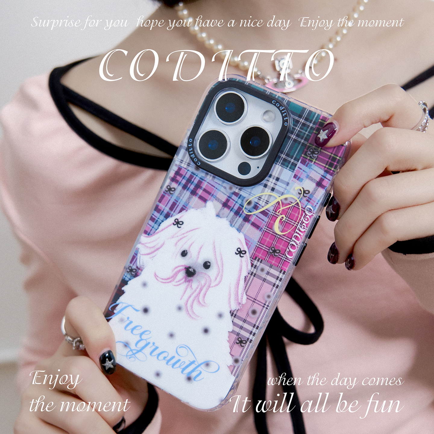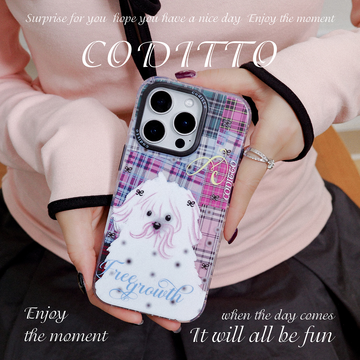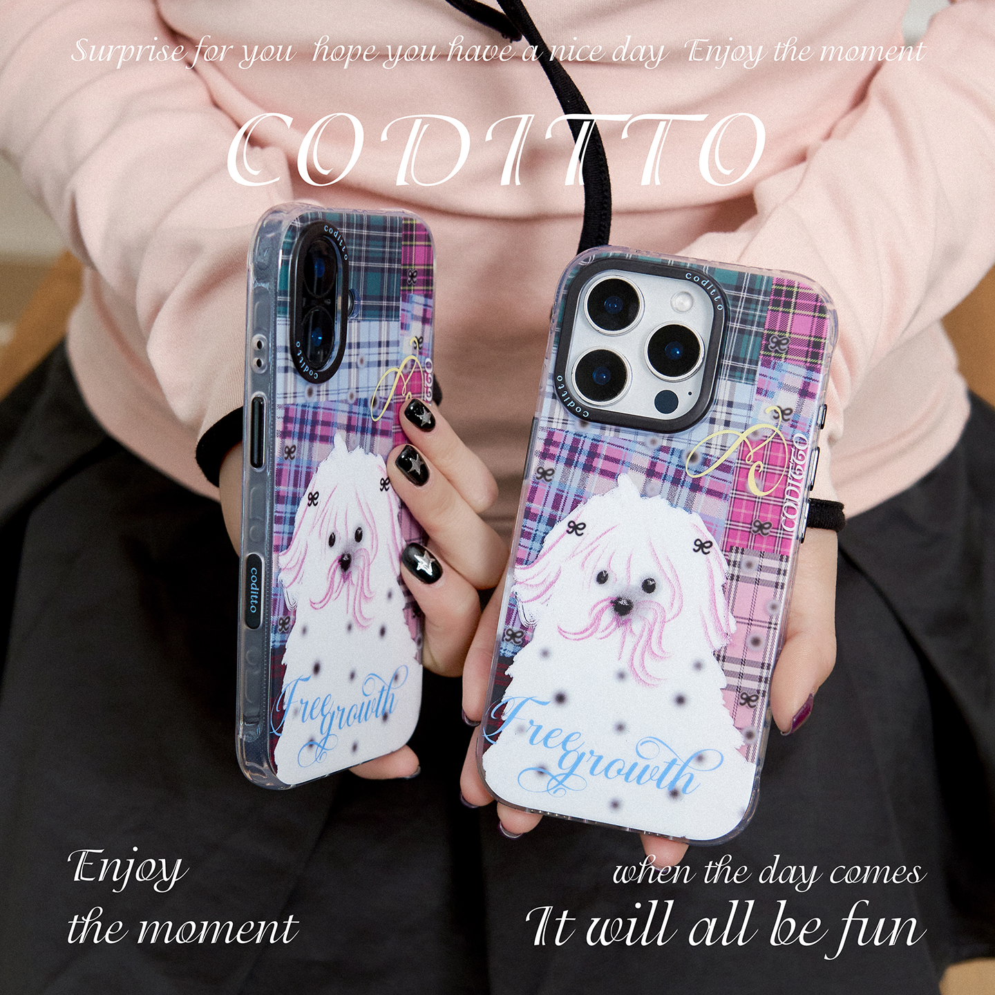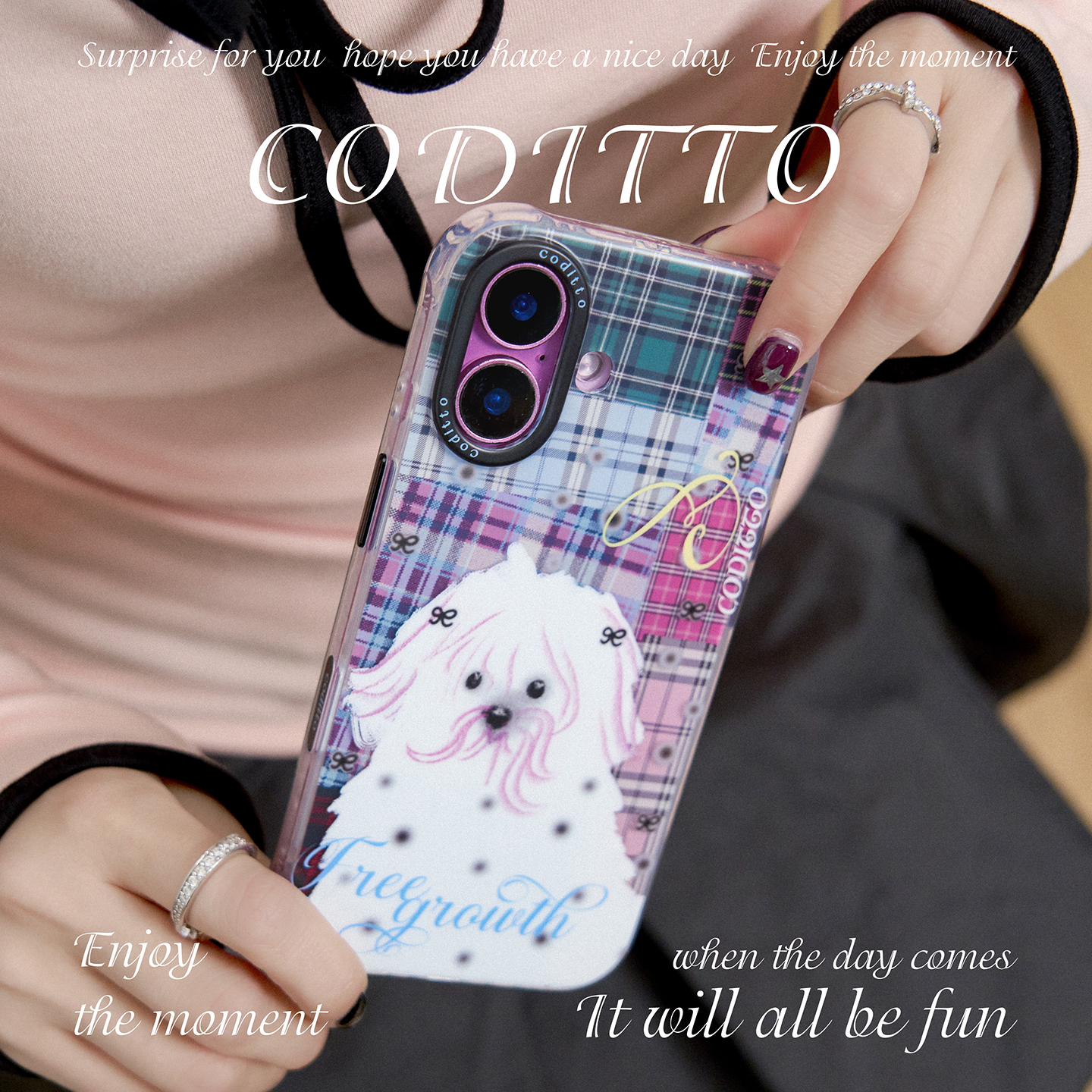 coditto格纹小狗磨砂带相机按键双层印花适用iPhone16手机壳萌系原创新款16pro创意可爱苹果16promax保护套