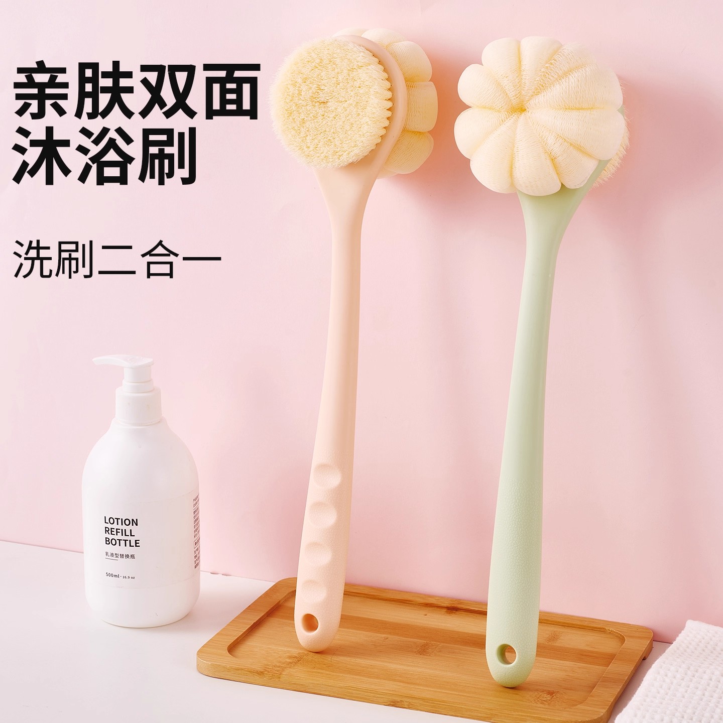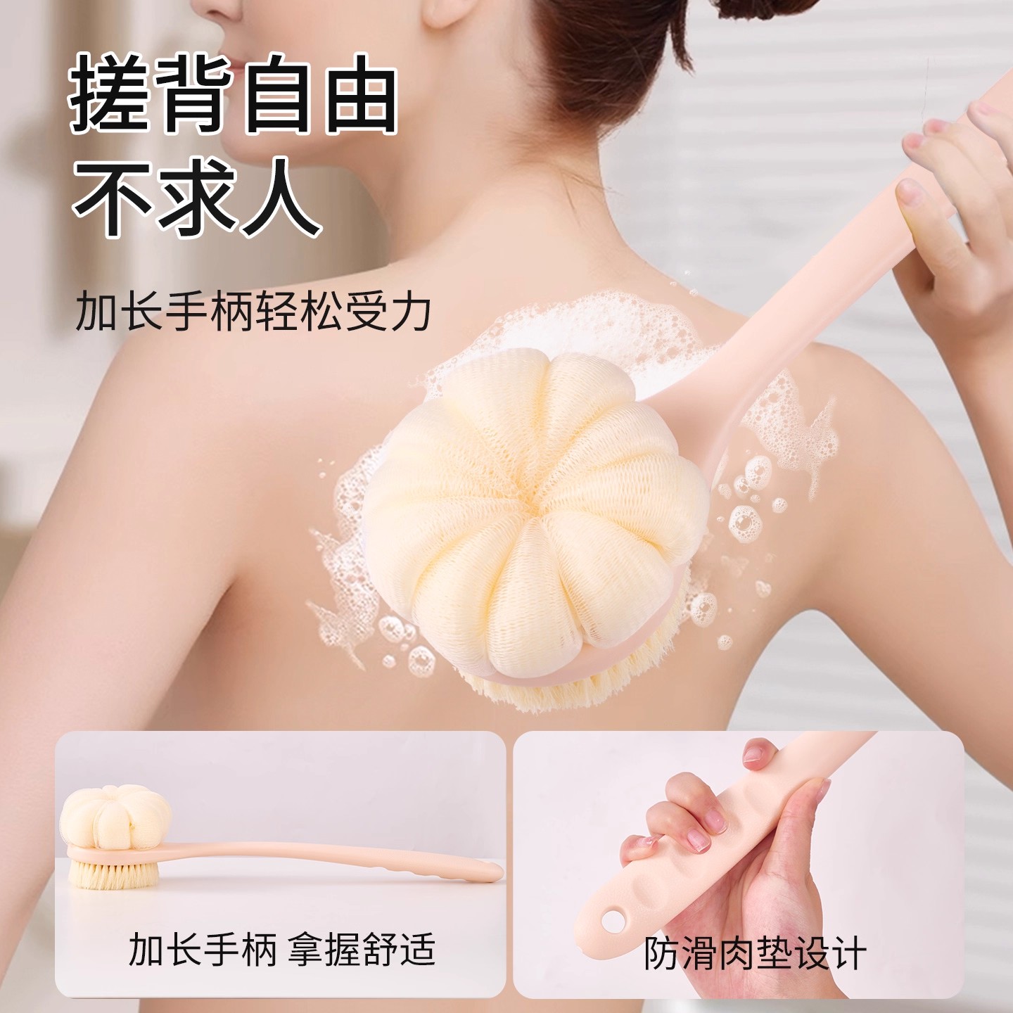 洗澡刷搓背不求人长柄刷软毛刷子双面沐浴刷搓泥去灰搓澡刷背神器