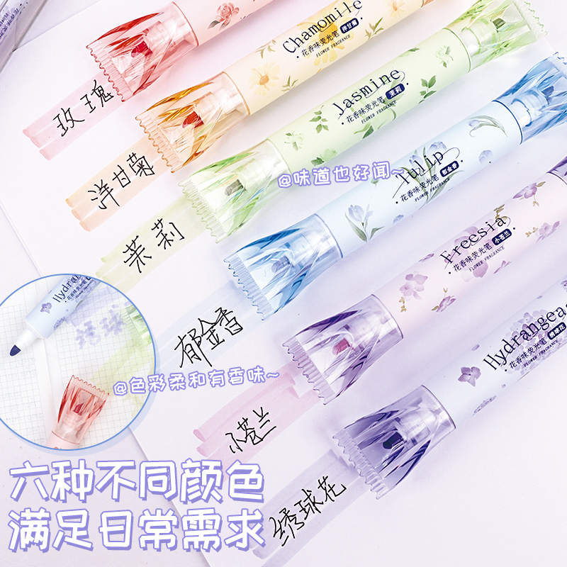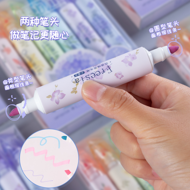 集物社双头香味荧光笔标记笔学生用记号笔彩色划重点专用轮廓笔手帐笔彩色斜头大容量做笔记划重点初中生专用