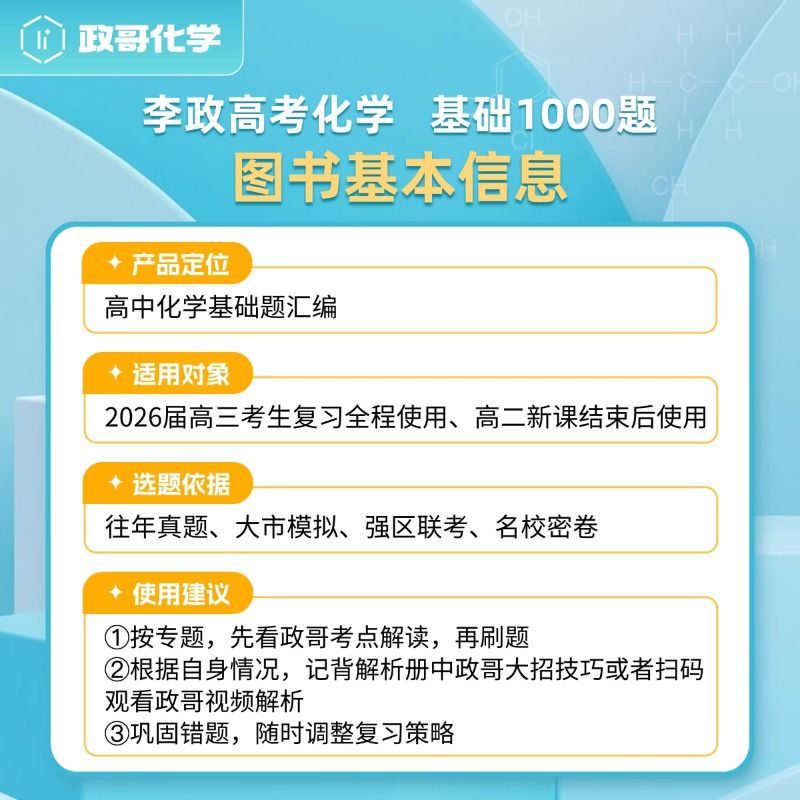 李政化学基础1000题2025网课视频高中讲义政哥化学冲刺600题基础一千题高考黄夫人物理讲义高一高二一轮讲义复习知识真题辅导资料