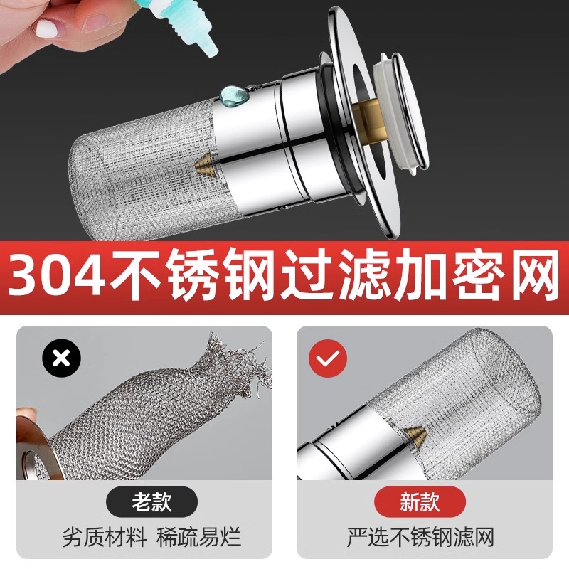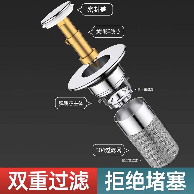 洗手盆漏水塞子面盆弹跳芯脸盆按压式配件防臭过滤下水器滤网地漏