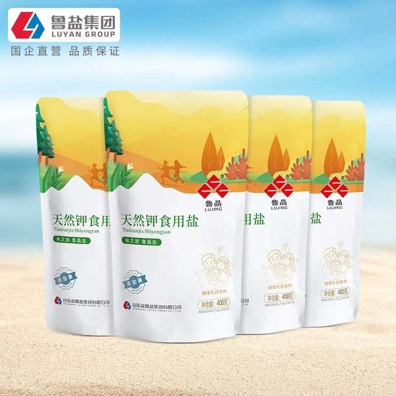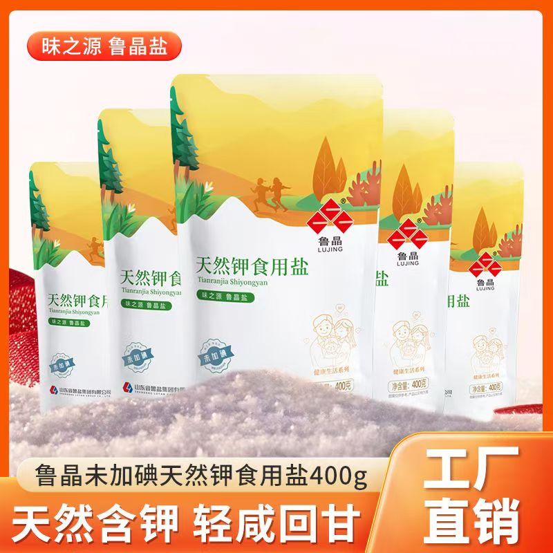 鲁晶天然钾食用盐400g*4袋未加碘食盐富钾碘家用整箱精制盐无碘