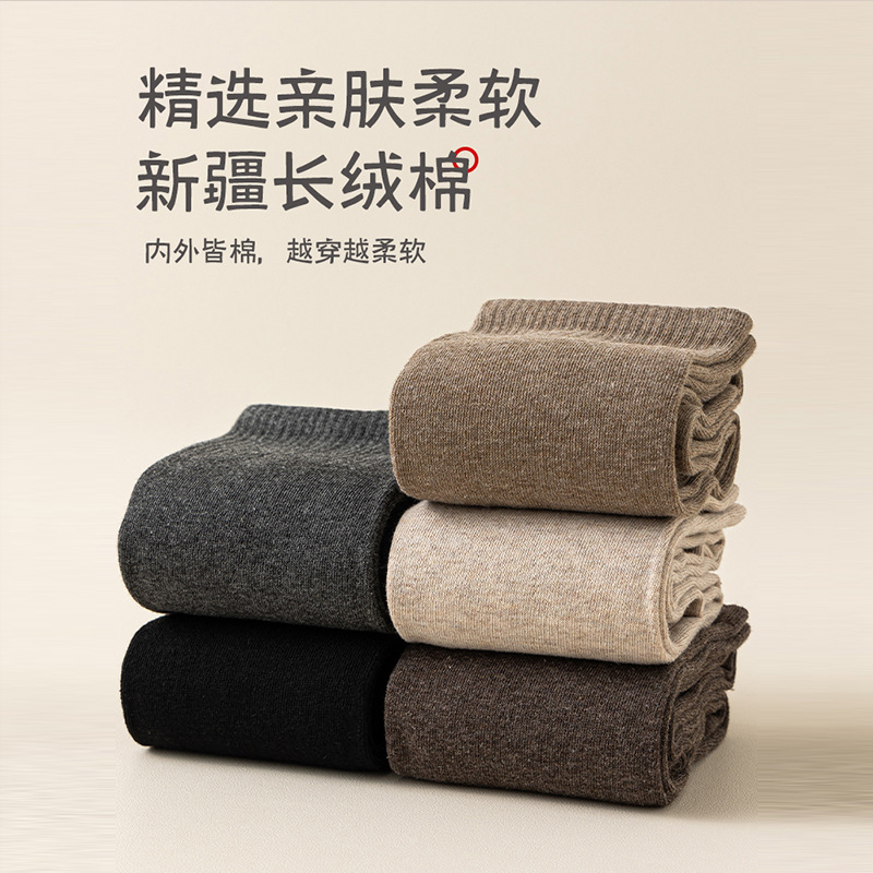 5双装 往往精梳棉质3A抗菌女士袜子中长筒袜纯色休闲男袜秋冬季