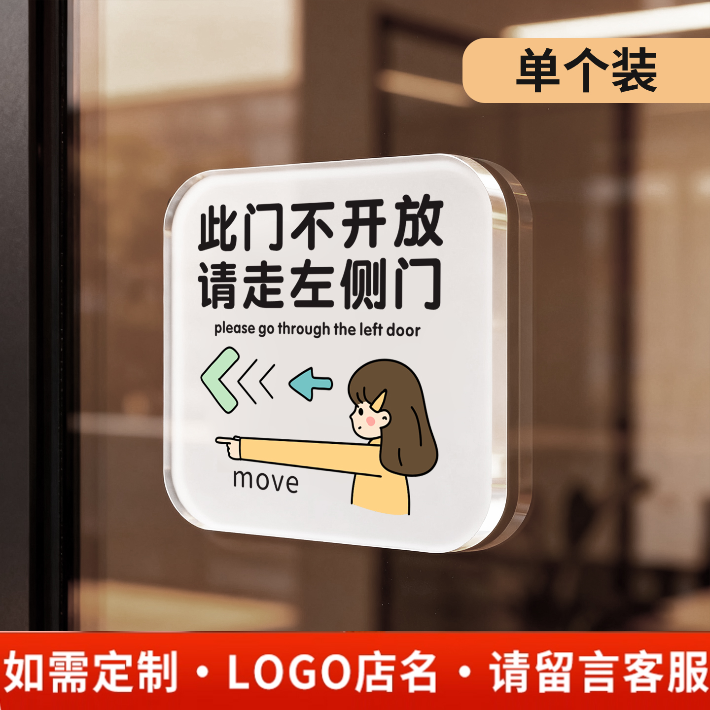 此门不通提示牌请走侧门贴纸玻璃门贴标识推拉门牌左右移动亚克力