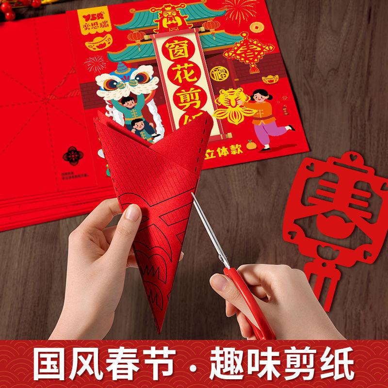 2025新年窗花剪纸套装半成品 儿童手工diy传统民俗中国风底稿图案