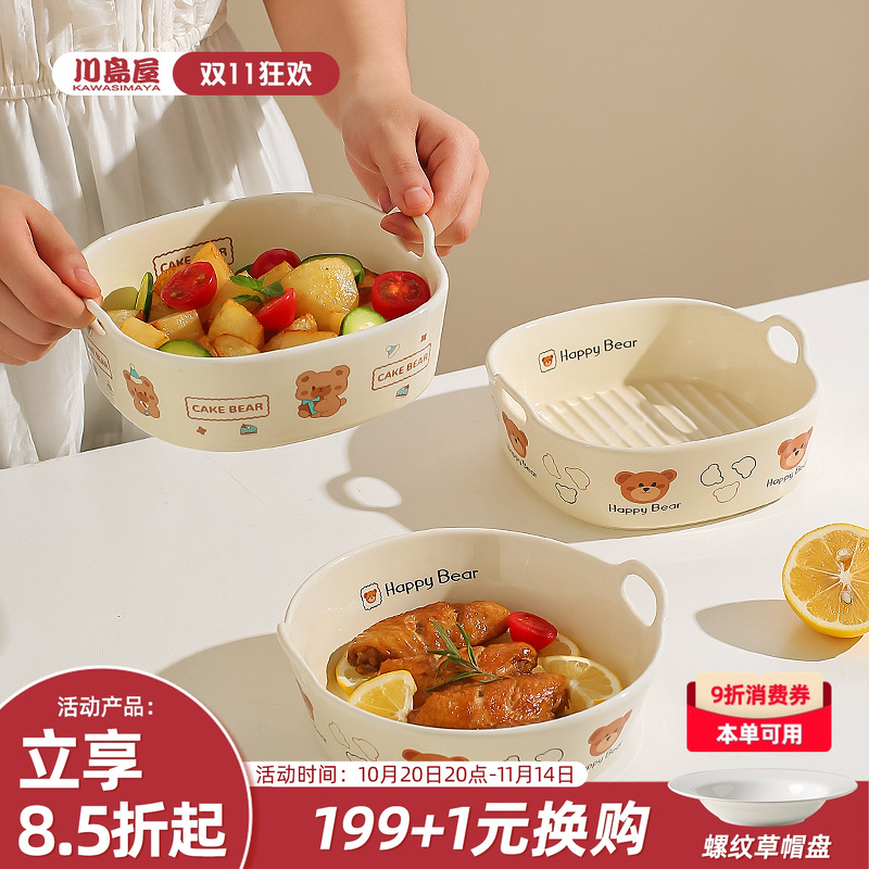 川岛屋空气炸锅专用碗陶瓷烤碗烤箱用方形双耳烤盘沙拉烘焙焗饭碗