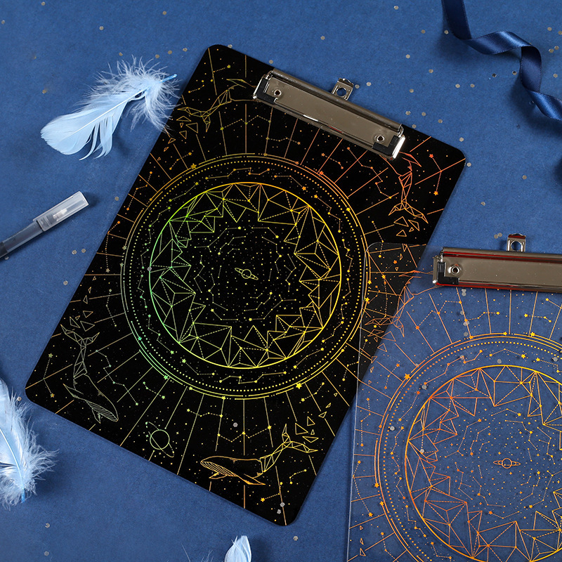 亚克力星空镭射板夹A4透明书写垫板烫金夹板写字试卷夹创意文具