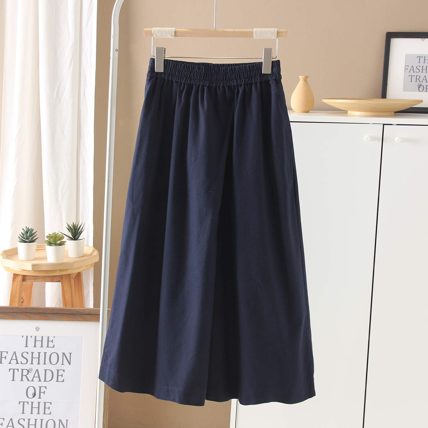 轻薄透气会呼吸!简约松弛感松紧高腰苎麻九分裤宽松阔腿裤裙裤女