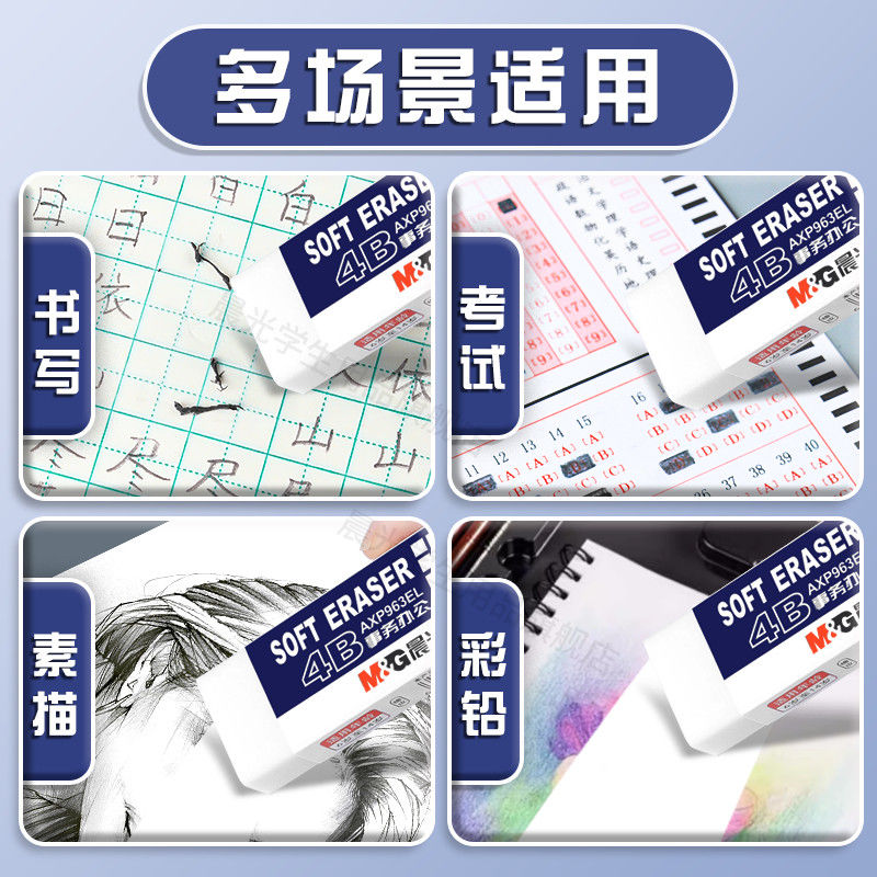 晨光4B橡皮擦不留痕少屑擦的干净橡皮檫考试儿童小学生专用