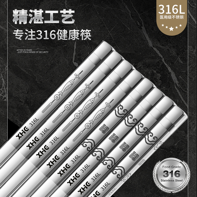 抗菌316不锈钢筷子家用防滑防霉304礼盒套装商用筷子一人一筷高档