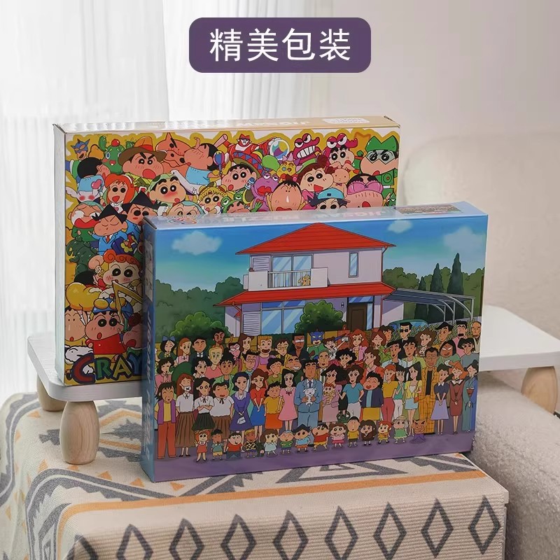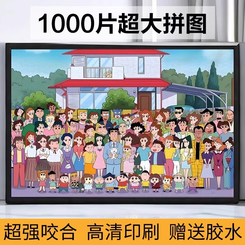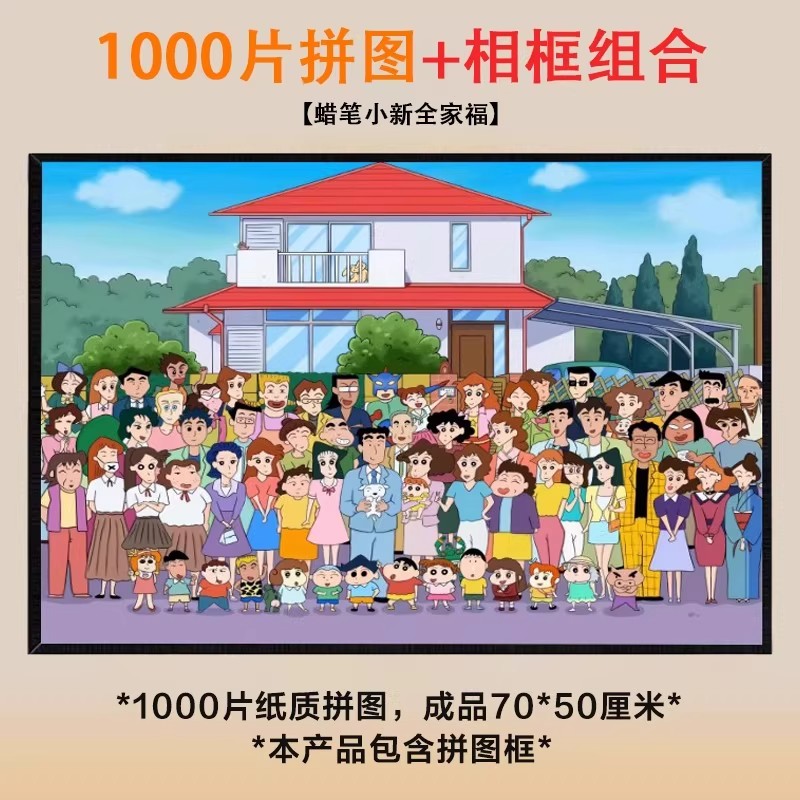 蜡笔小新全家福拼图玩具1000片带框成人男女孩益智卡通礼物送相框