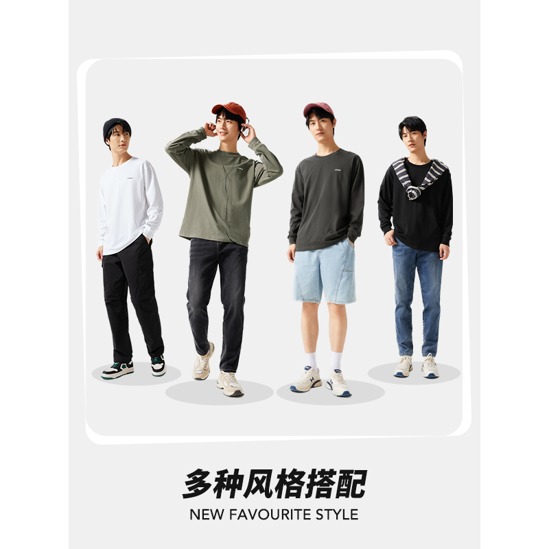班尼路重磅纯棉长袖t恤男款秋季打底衫半袖青少年大码短袖体恤夏A