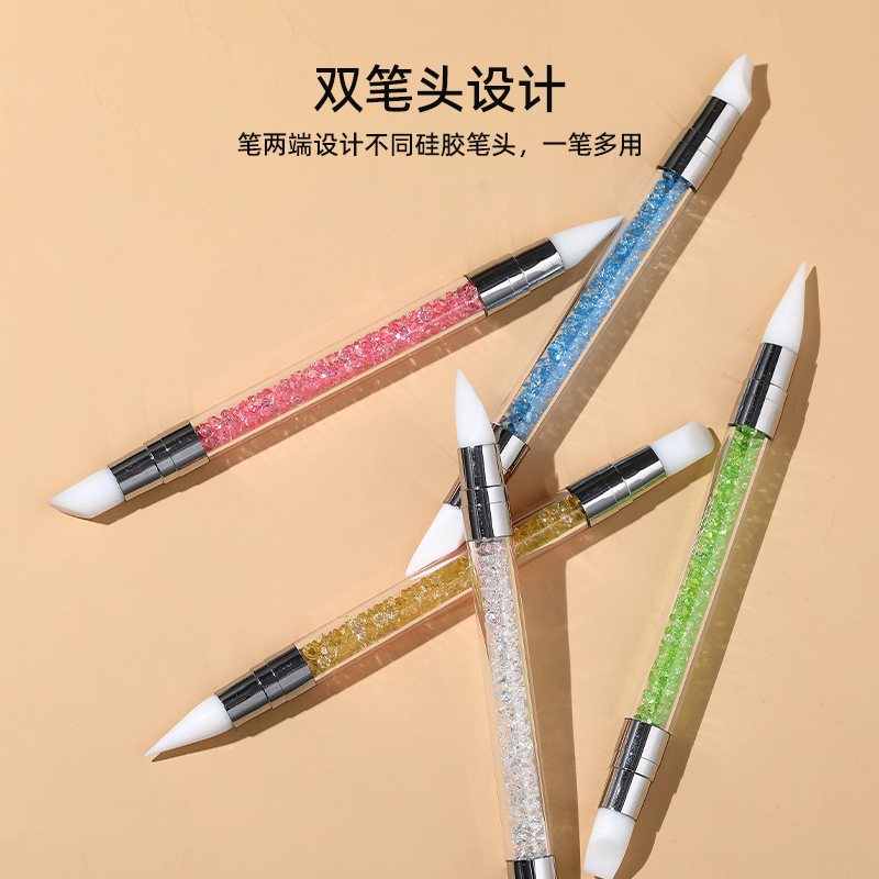 硅胶笔美甲双头涂抹魔镜粉贴纸按压棒雕花调胶渐变专业工具精致