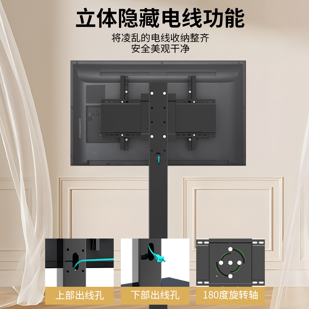 电视机落地支架横竖屏旋转可移动式直播投屏一体机挂架带轮推车
