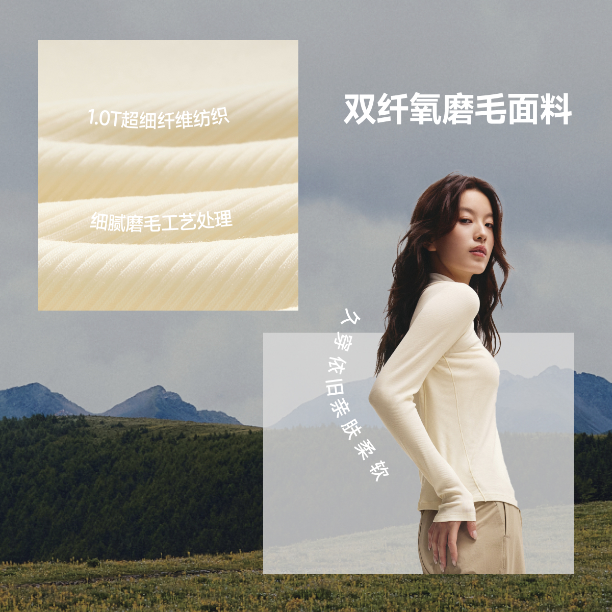 蕉下摇粒绒打底衫女秋季新款半高领保暖加绒亲肤内搭上衣肌底衣