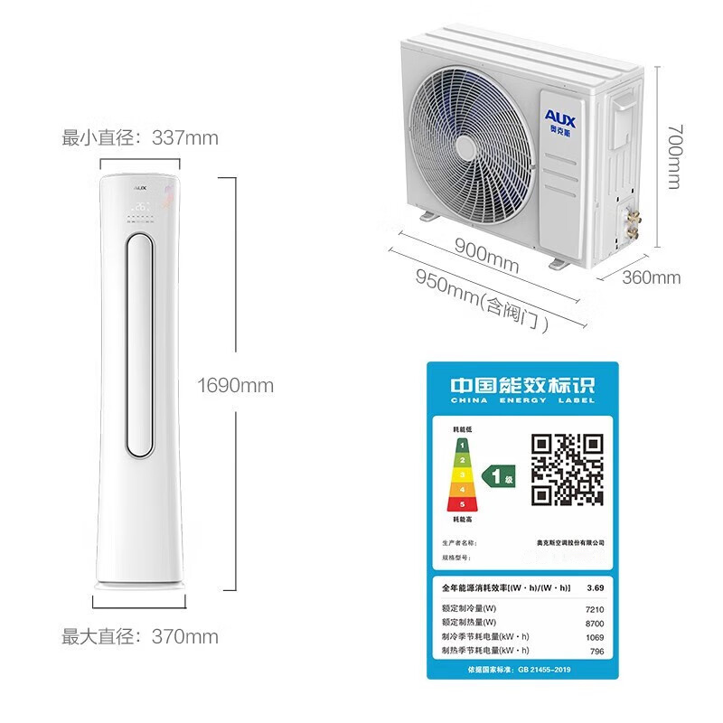 奥克斯空调柜机大3匹新一级变频冷暖俩用家用大风量节能立式省电