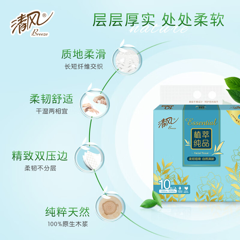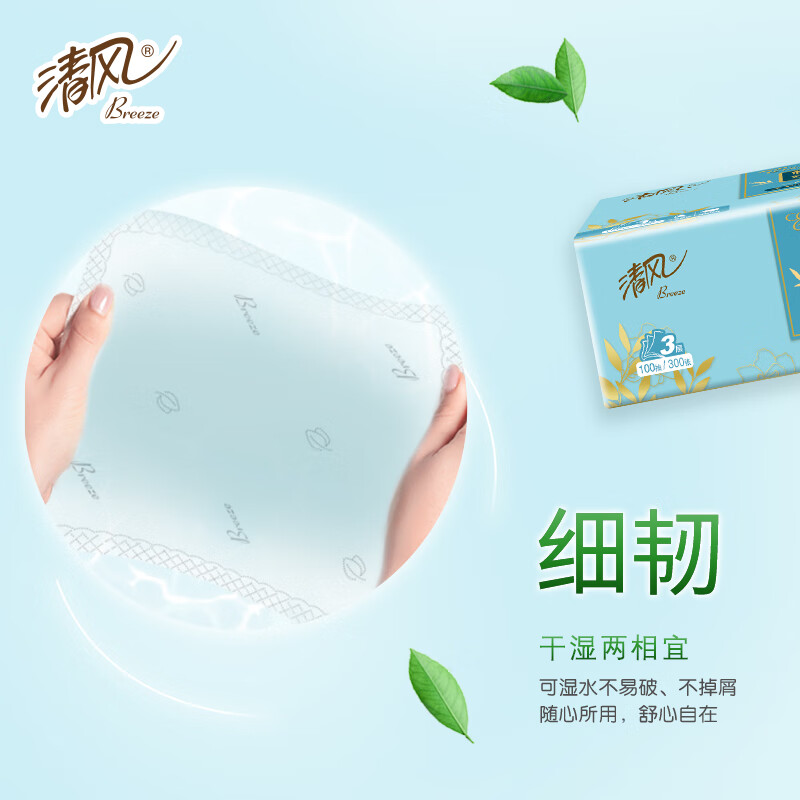 清风抽纸植萃纯品3层100抽面巾纸餐巾纸抽家用实惠装香味抽取式