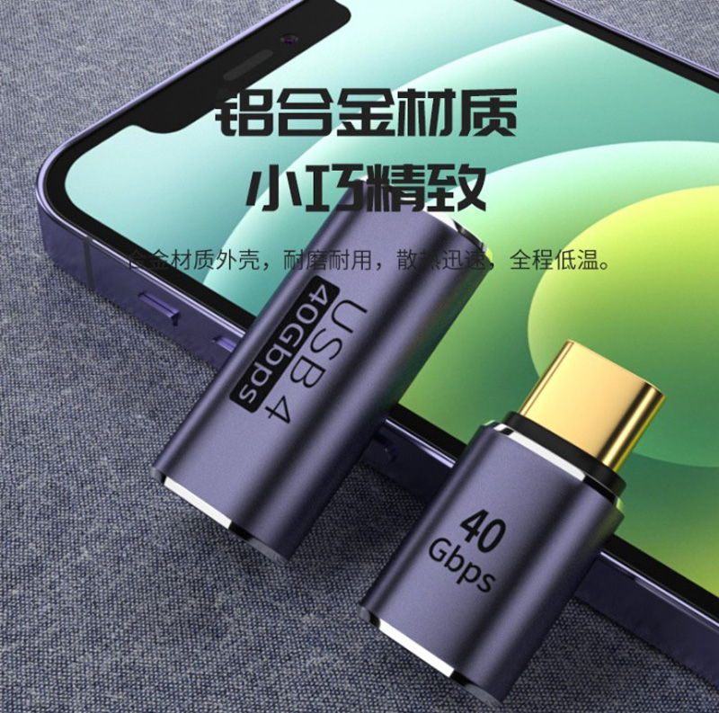 typec公转type-c母转接40GB立体弯头适用雷电3全功能 U型Type-C公对母手机平板笔记本电脑40G高速L形PD 100W