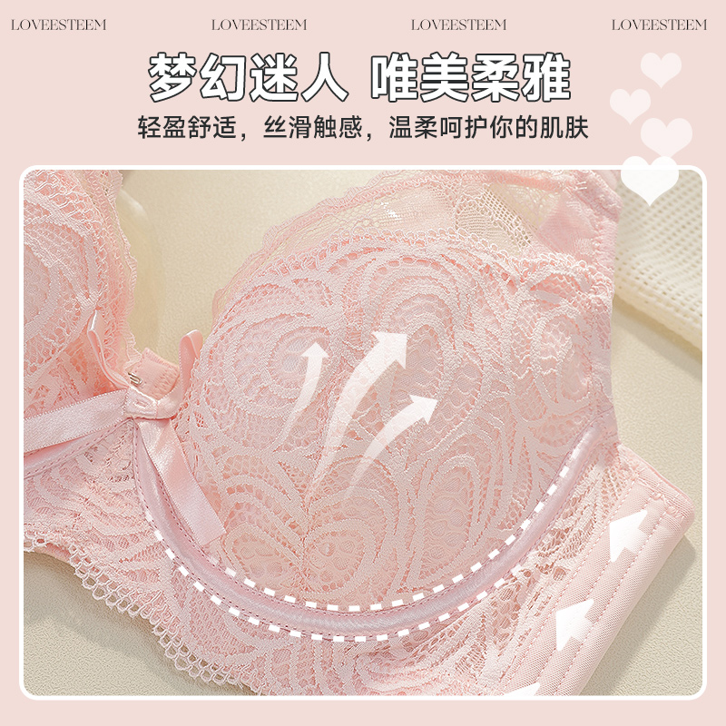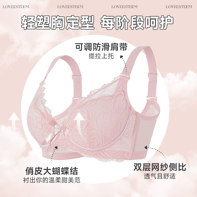 爱黛性感内衣女薄款夏蕾丝胸罩透气大胸调整侧收收副乳聚拢防下垂