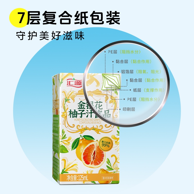 汇源金银花柚子汁果汁含量99%125ml*5盒儿童果汁小盒便携清凉解腻
