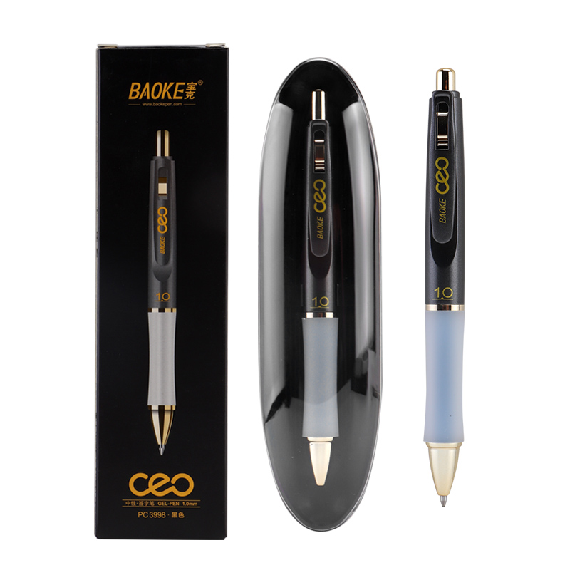 宝克1.0mm软握按动中性笔加粗按压黑色签字笔臻品练字专用水笔学生用粗头硬笔书法笔商务办公签名大笔画碳素