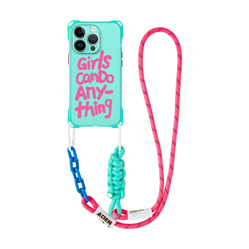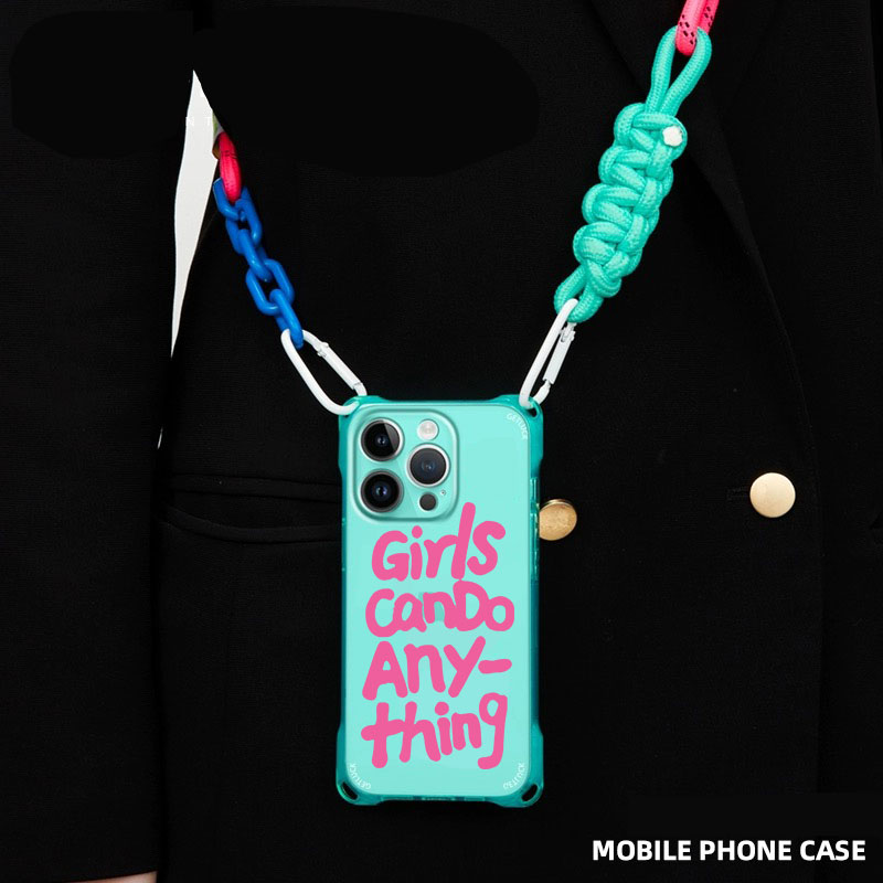 【女人无所不能】薄荷曼波透绿粉四角开孔防丢斜挎背带16promax软硅胶15手机壳全包防摔软