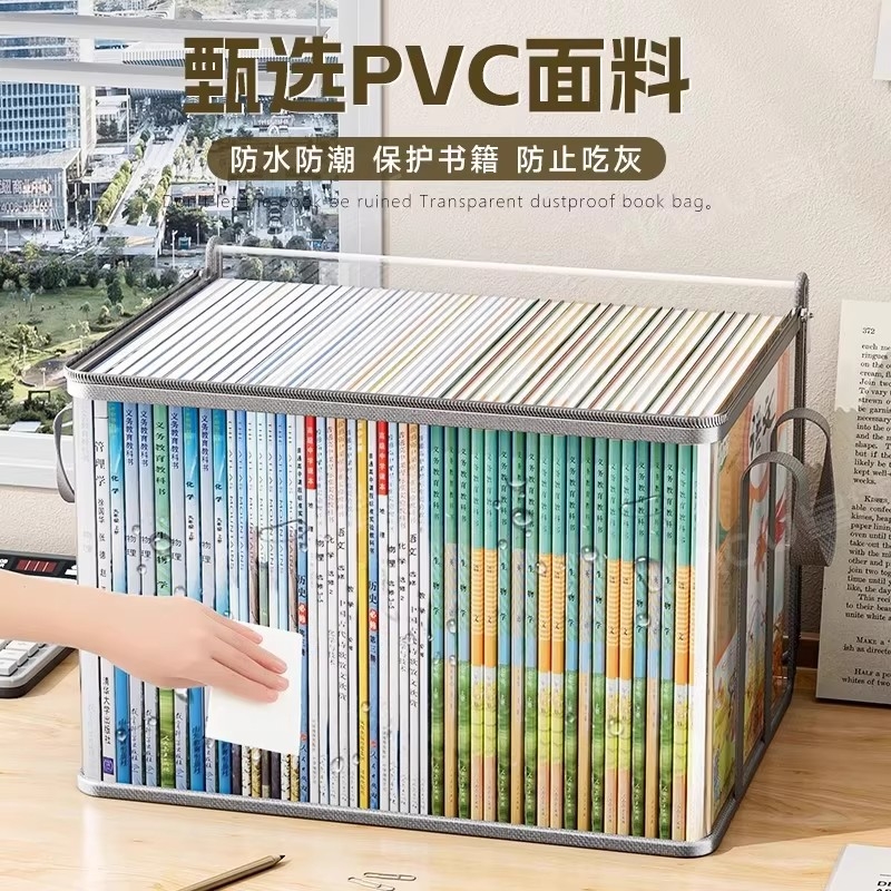 家用折叠收纳箱学生教室书籍袋收纳旧书收纳神器书箱书本透明学校防尘整理袋大容量高中课本防水防潮桌面超大