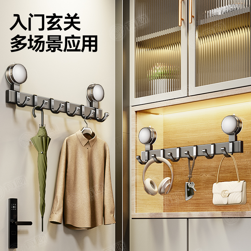 吸盘挂钩免打孔强力浴室厨房门后毛巾架子壁挂排钩太空铝承重免钉