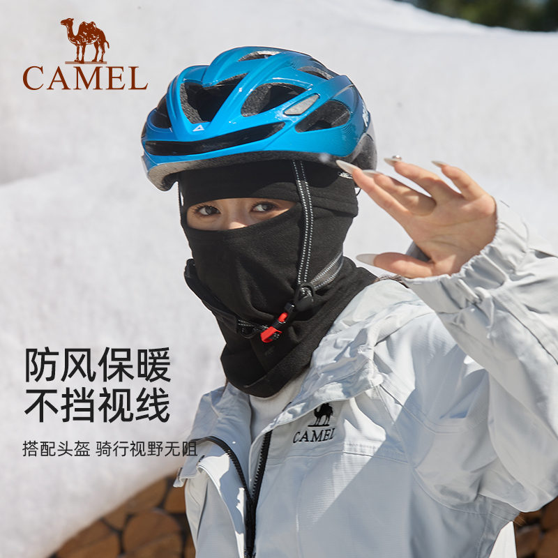 骆驼抓绒帽子围脖一体冬天保暖头套男女冬季防风防寒骑车骑行面罩