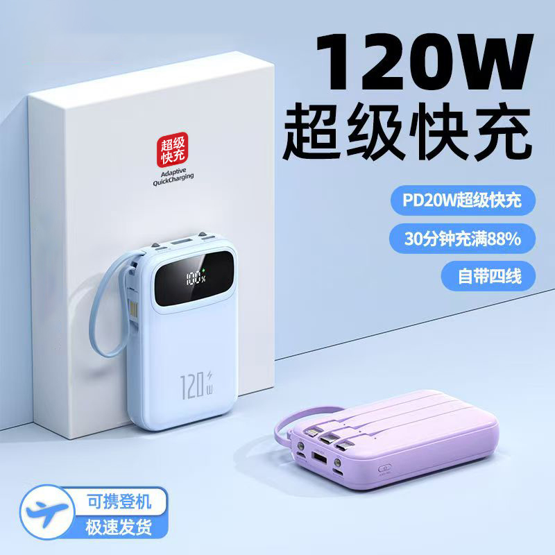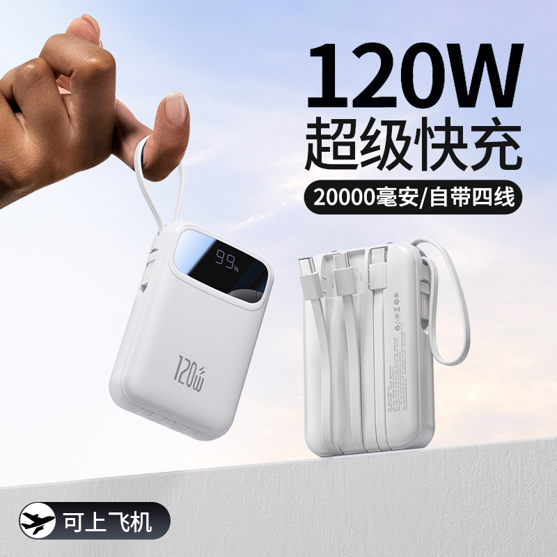 3C认证2025新款自带线20000毫安大容量充电宝正品官方旗舰店超级快充适用华为vivo苹果迷你2万超薄小巧便携