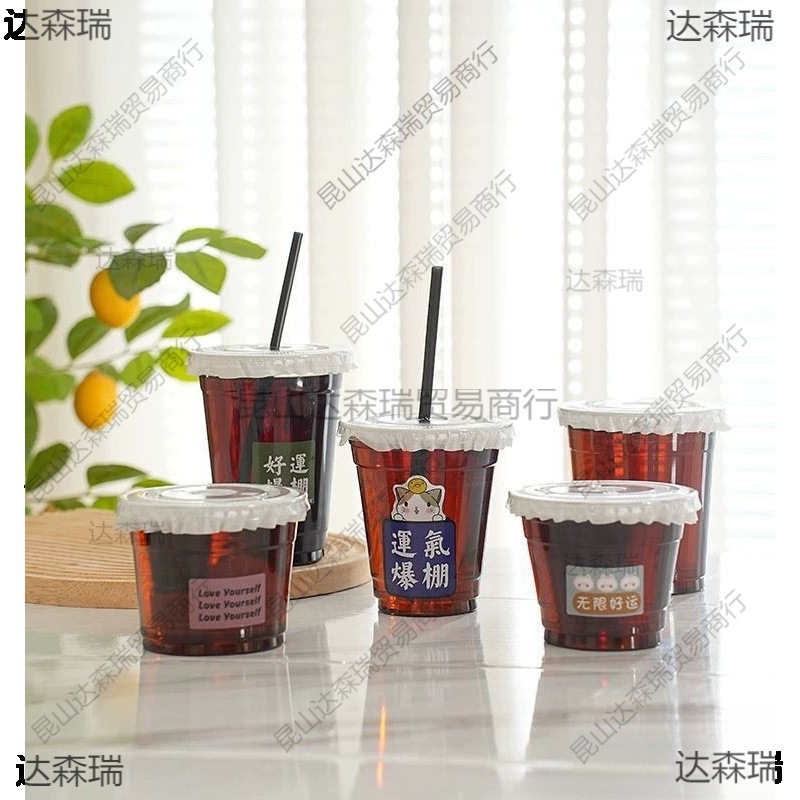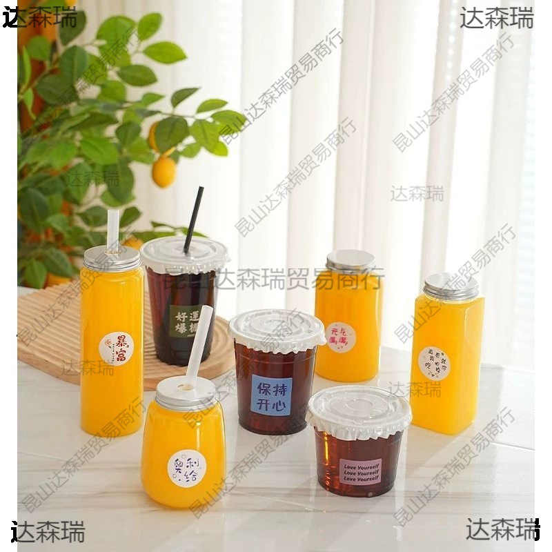 橙汁杯子一次性商用果汁饮料瓶带盖酸梅汤杯子绿豆汤打包杯摆摊杯