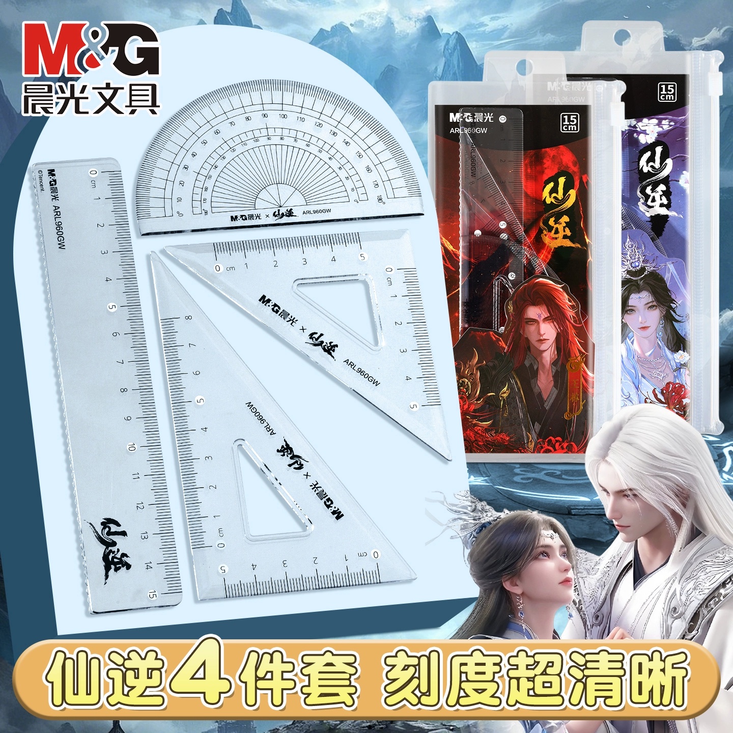 晨光仙逆联名文具中性笔盲盒修正带订书机铅笔王林李慕婉徽章色纸挂件仙逆逆魂方形徽章套装套尺图画本卡套