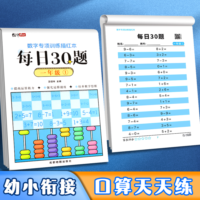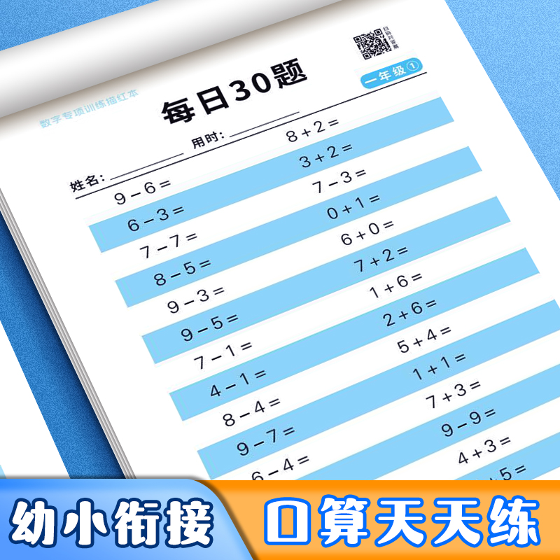小学生每日30题口算本一年级二三年级寒假数学口算练习纸天天练上下册训练题卡100以内加减法练习本幼儿园