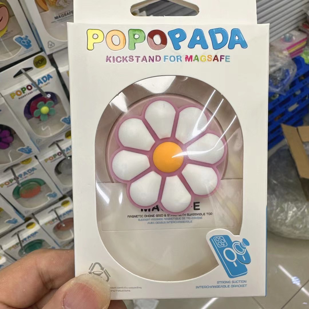 Magsafe 立体硅胶 白色花朵网红明星折叠伸缩啪嗒支架垫套