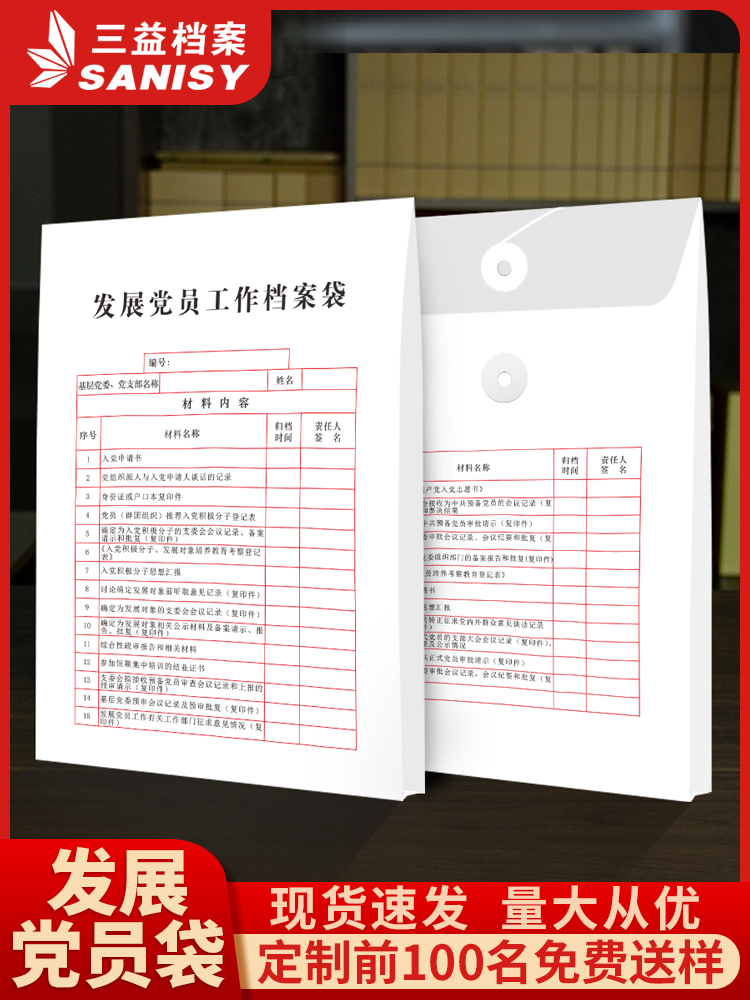 50个A4党员档案袋210g大容量加厚进口牛皮纸发展预备党员资料袋团员档案文件袋共青团员政审材料袋党员袋定制